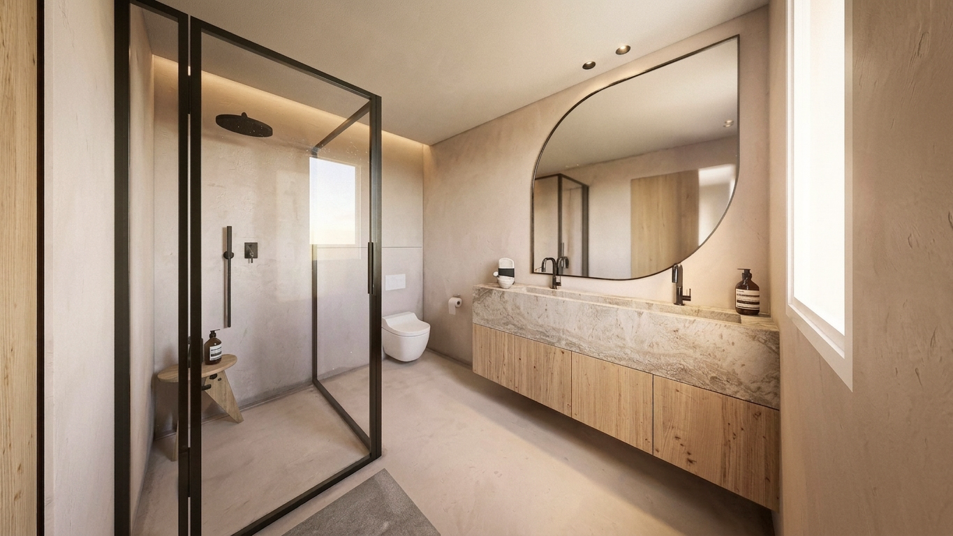 Materials are used in their raw expression, while light is carefully integrated to shape depth, contrast and atmosphere.